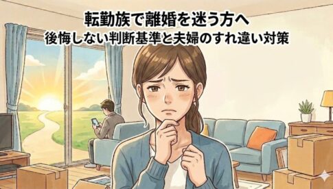 転勤族の暮らしと結婚・家族 【転勤族で離婚を迷う方必見】後悔しない判断基準と夫婦のすれ違い対策2026.03.03転勤のたびに仕事を辞めて、転校をさせて、夫を支えるだけの人生で離婚の二文字が頭をよぎる…。 夫は仕事で手一杯で、私の辛さをわかってくれなくて。会話も減ってすれ違うばかりだし、もう離婚したほうがいいのかな? 辛い気持ちを話...