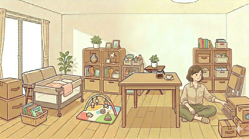 →1つの家具に役割を2つ持たせる(例:テーブル=食事+作業) - 収納や配置を柔軟に変えられるものを選ぶ