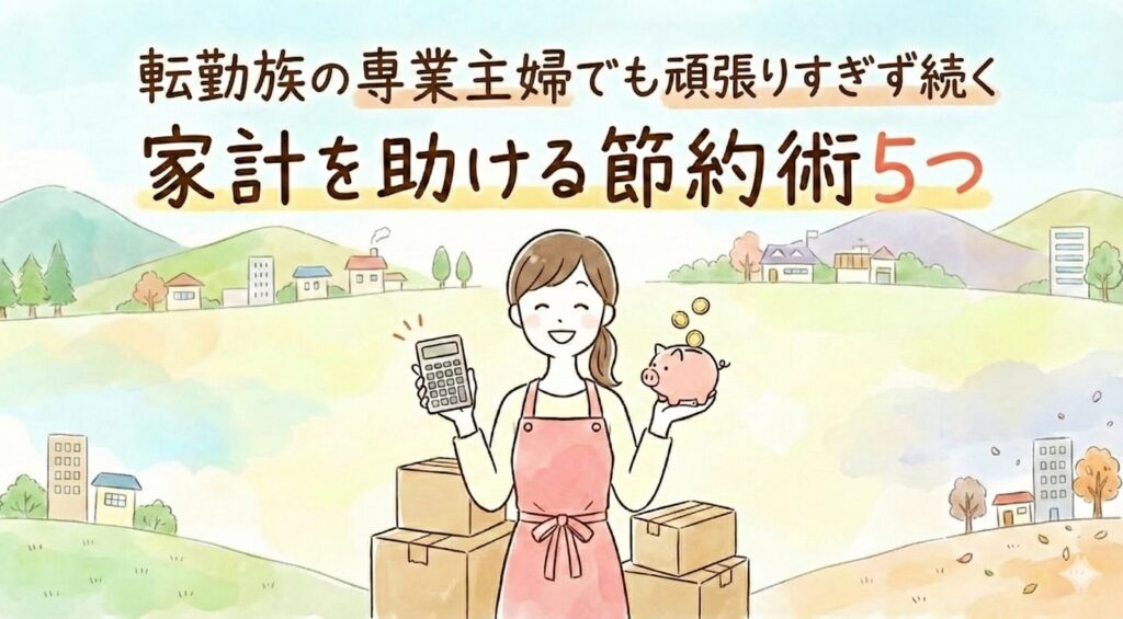 転勤族の専業主婦でも頑張りすぎず続く5つの節約術を紹介しました。