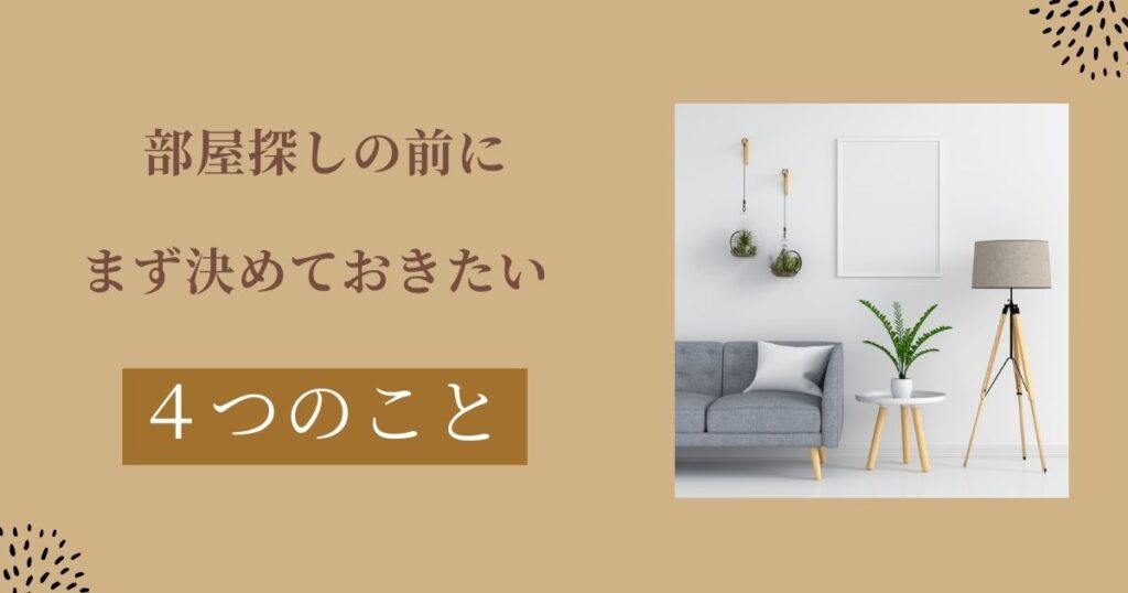 次に、部屋探しの前にまず決めておきたい4つのことを解説。