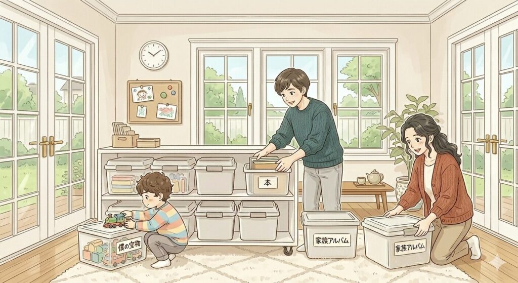 転勤族の収納を続けていくには、家族で収納の決まりを共有しておくと整えやすくなります。